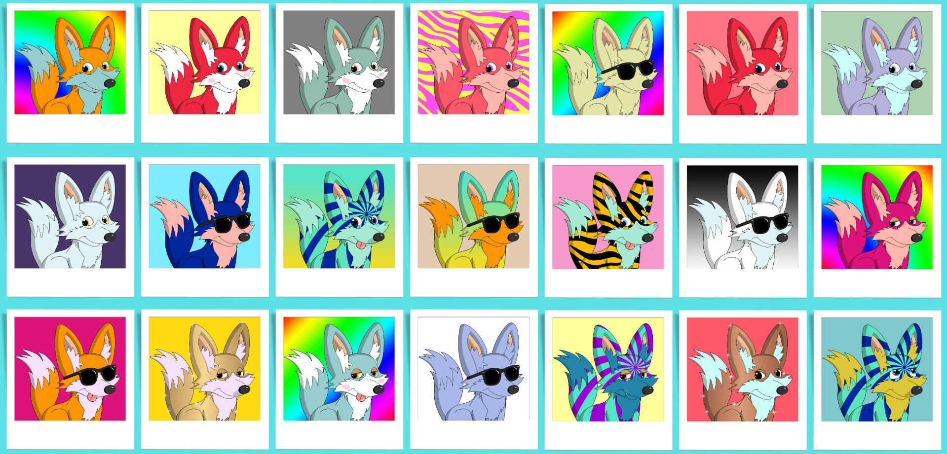 Each Funky Fox is compromised of a totally unique background, coat, fur, mouth, eyes, iris, and facial feature combination.